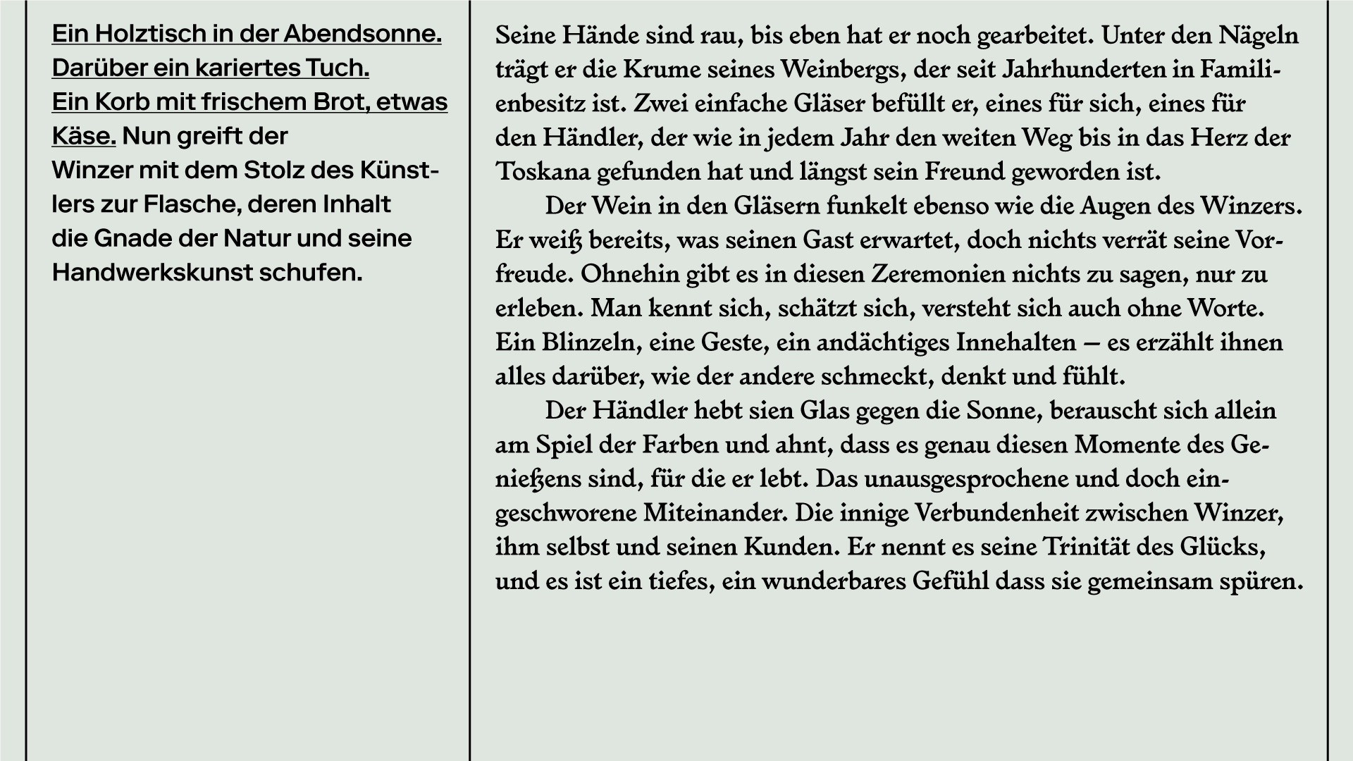 Das Bremer Familienunternehmen Lobenbergs gilt Kennern guter Weine als höchstes Qualitätsversprechen. Und wie sich im Verlauf des umfassenden Rebranding-Prozesses zeigte, strahlt dieses Versprechen durch ganz Europa. Der fortwährend beliebte Weinkatalog gilt manch einer Kundin gar als „Bibel“.